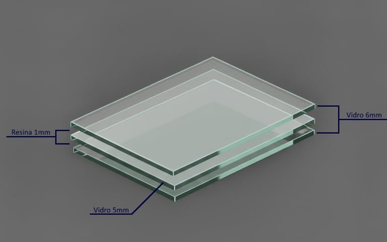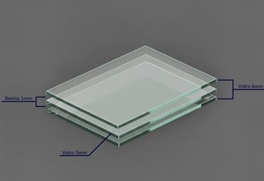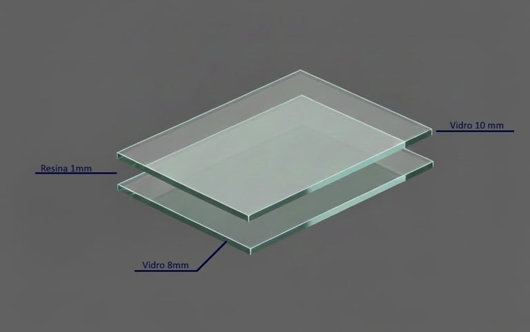 Vidro multilaminado de alta densidade, desenvolvido para atenuar ruídos intensos. A estrutura é formada por três lâminas de vidro e duas camadas de resina (6+1+5+1+6), totalizando 19 mm de espessura.